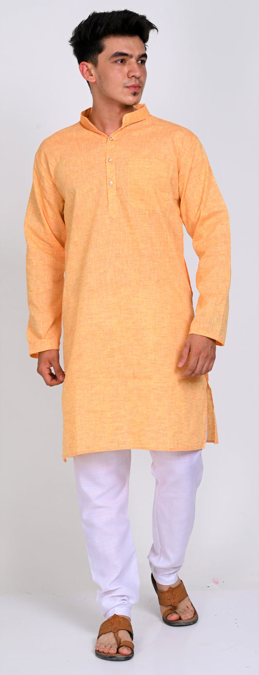 Men's Yellow Premium Cotton Kurta Pajama Set