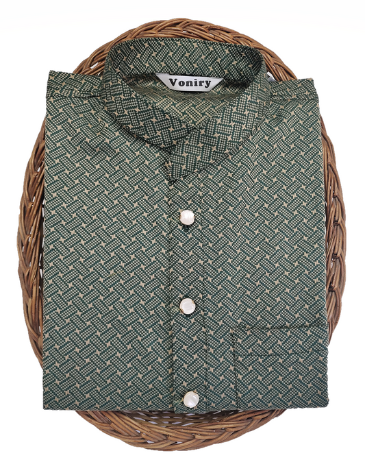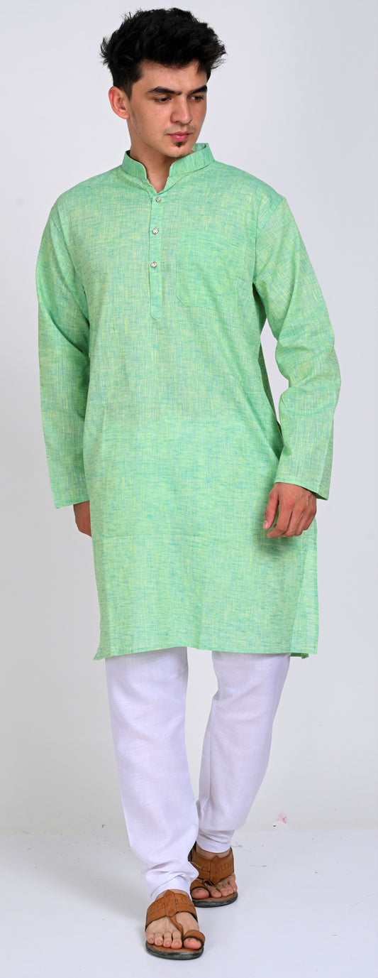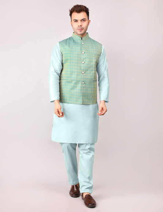 Men's Silk Blend Kurta Pajama with Designer Bundi Nehru Jacket/Waistcoat Green