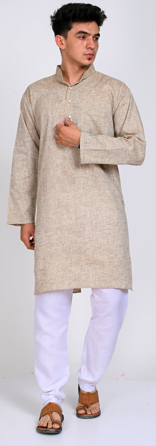 Men's Grey Cotton Khadi Kurta Pajama Set
